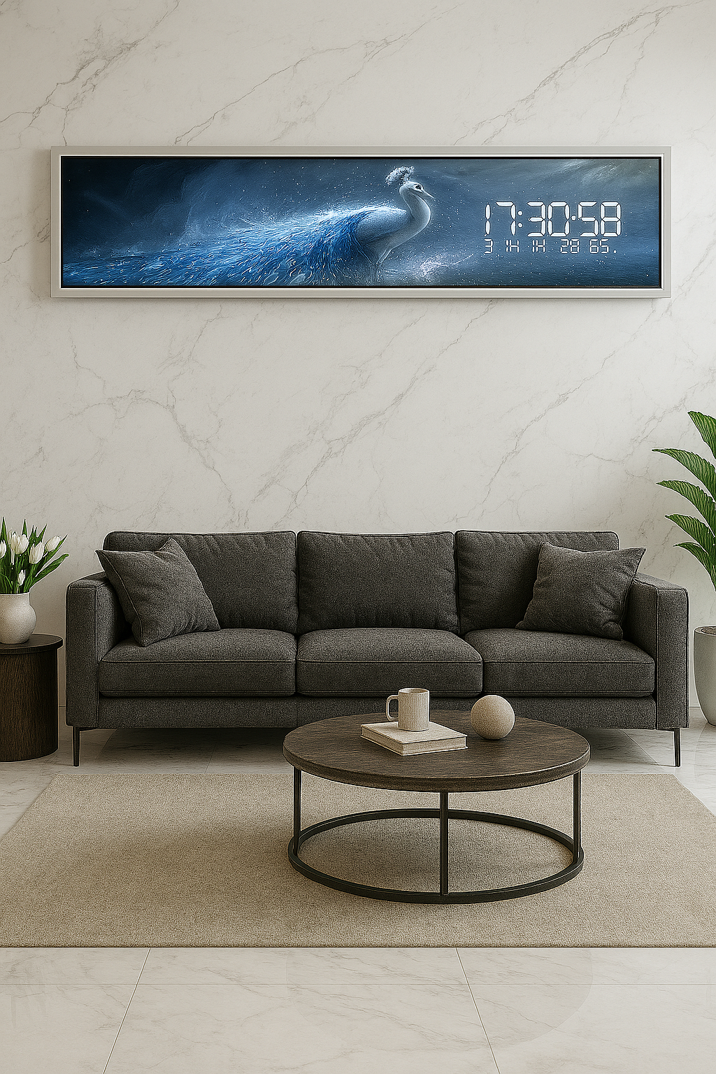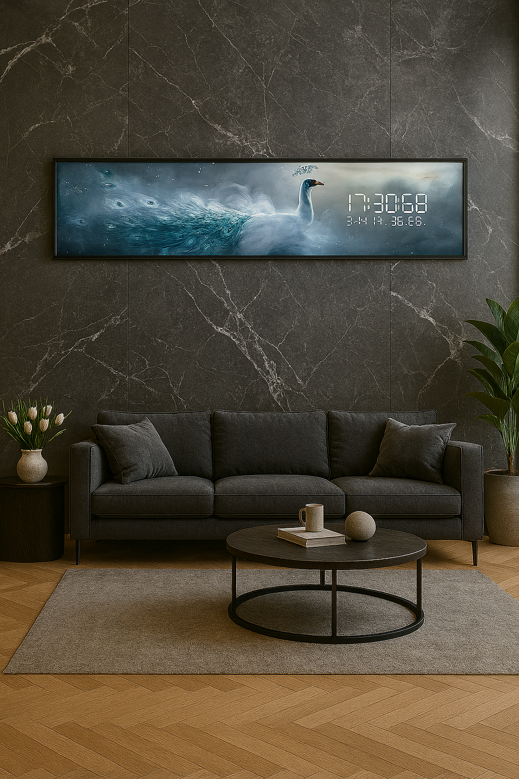 Une splendeur captivante ! Cette horloge mêle la grâce d’un paon majestueux à une ambiance céleste, idéale pour apporter élégance et mystère à votre décor.
